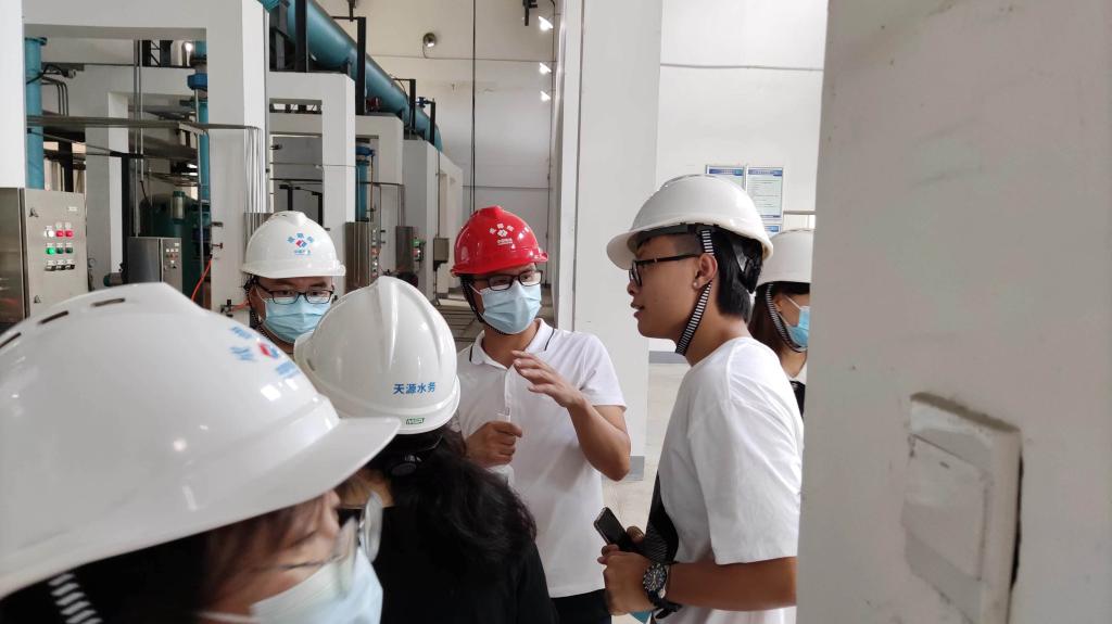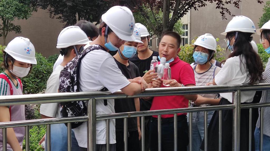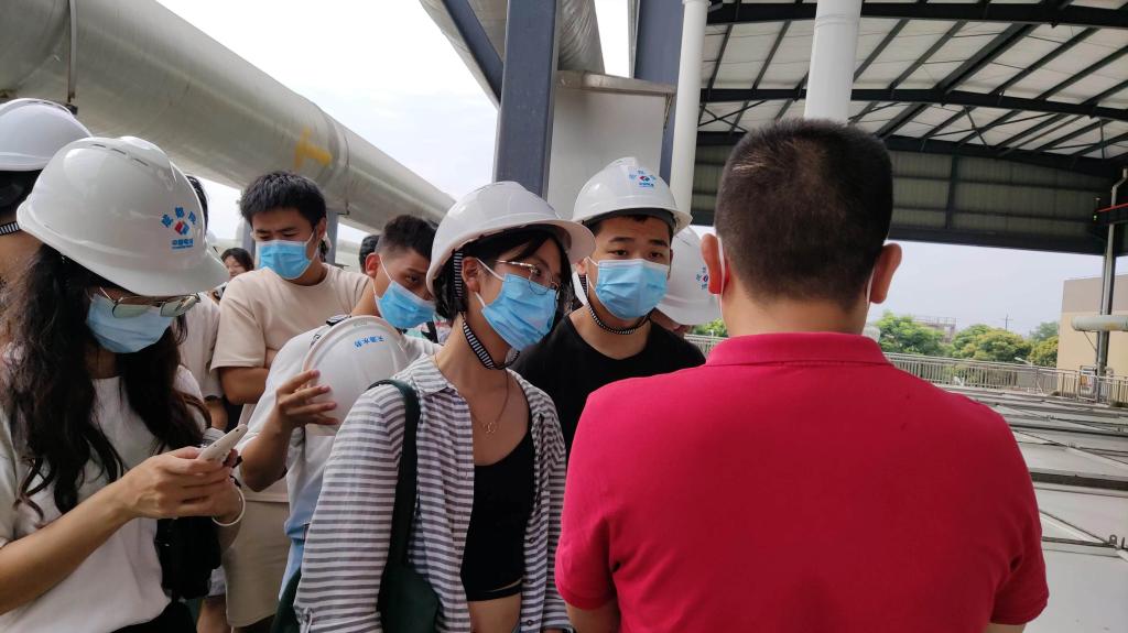 各企业代表详细安排了学生实践教学的参观讲解、体验、答疑等环节。长虹格润安全环保部部长罗宏基在公司展厅仔细讲解了废旧家电、废旧锂电池再生资源化的基本流程,拆卸工厂人员以直观的方式展示了具体生产制作流程。在正升环境,经理张涵猗如数家珍地讲解并展示了原料为沙漠沙粒、废弃镍等的隔声材料,详细介绍了其在交通、热电厂、大型会议厅等的使用案例。学生们还在实验技术人员指导下进行了19分贝安静环境与消声设备实际体验。在天源水务运营下的综合污水处理厂,学生们跟着厂长李晓华、总工刘东顺着水处理工艺流程一起爬上污水处理构筑物,见证浑浊有味的废水如何变得如饮用水一般清澈。